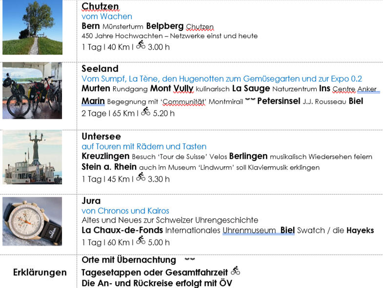 Schauplätze buchstäblich erfahren mit E-Bike und Zug. Annäherung an Orte und Personen, von einst und heute kreativ erleben. Eine Reise dauert 2 bis 4 Tage.Wirkungen